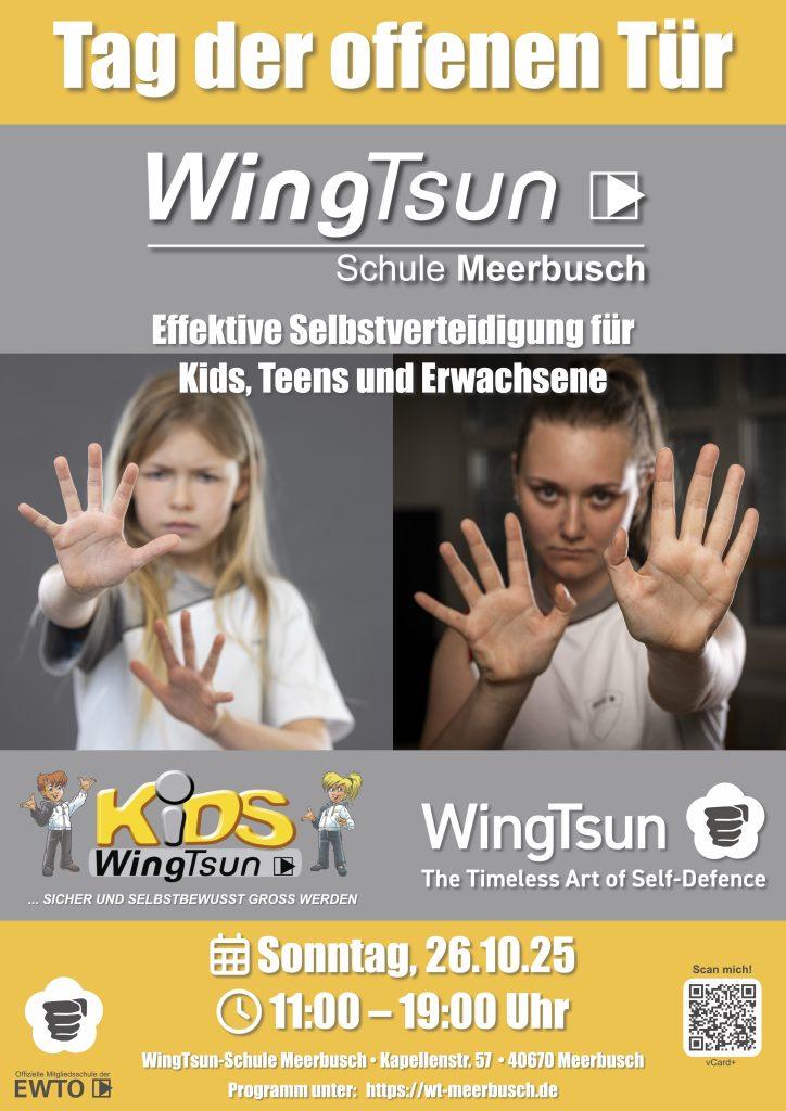 Neben mehreren kurzen Schnuppereinheiten, stehen wir Euch den ganzen Tag mit Rat und Tat zur Seite und stellen uns Euren Fragen rund um die Schule, WingTsun, Selbstverteidigung, Selbstbehauptung etc.